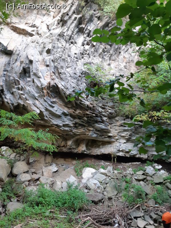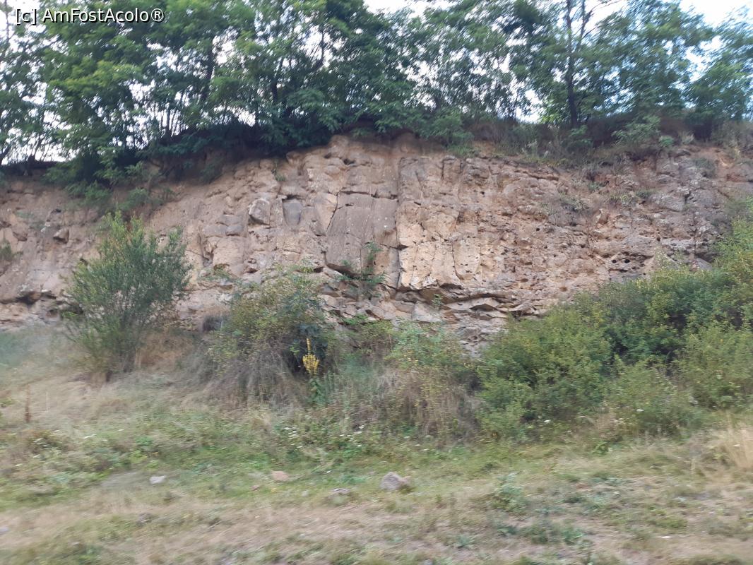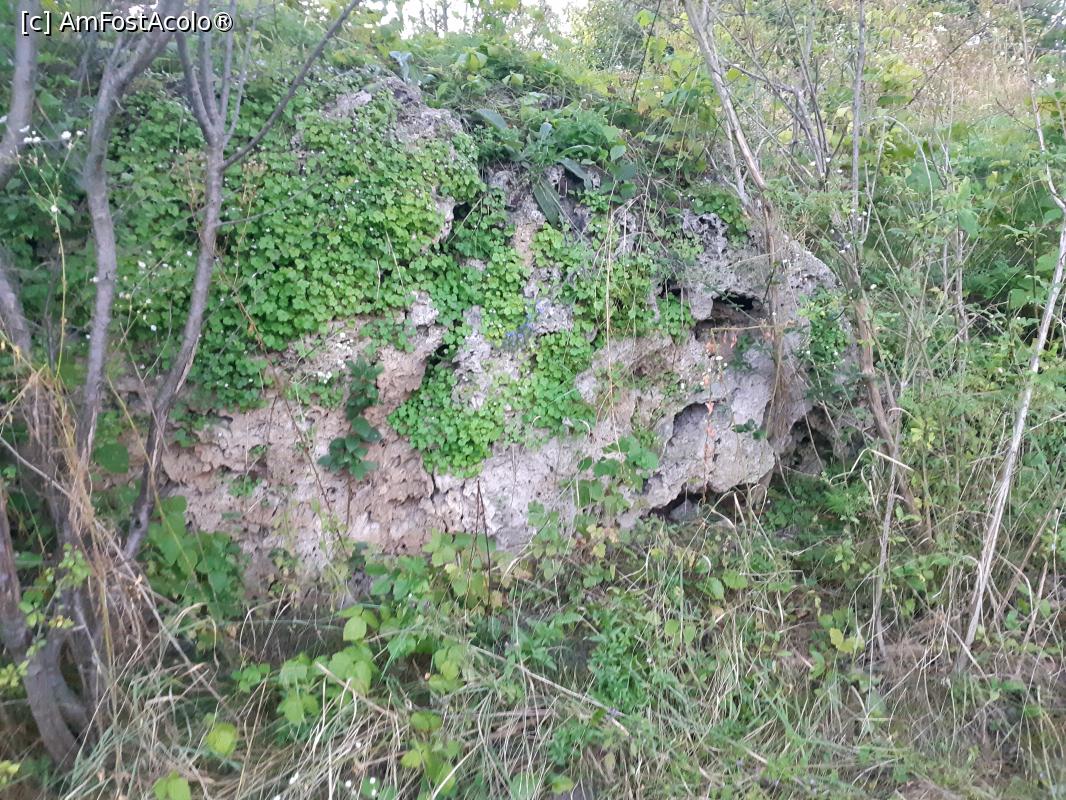[P09] Aflată la limita superioară a văii, pe partea stângă lângă locul de coborâre spre peșteră, pare o stâncă calcaroasă (sau scorie bazaltică ?)
