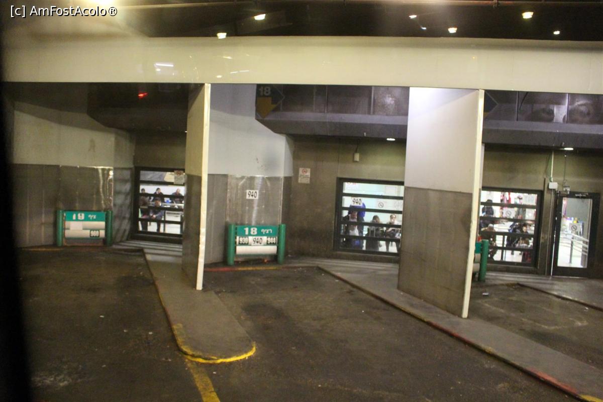[P03] Ierusalim, Staţia Centrală de Autobuze, Vedere de pe peroane, autobuzul pleca, se văd in interior oamenii cum așteptau la fiecare mic peron