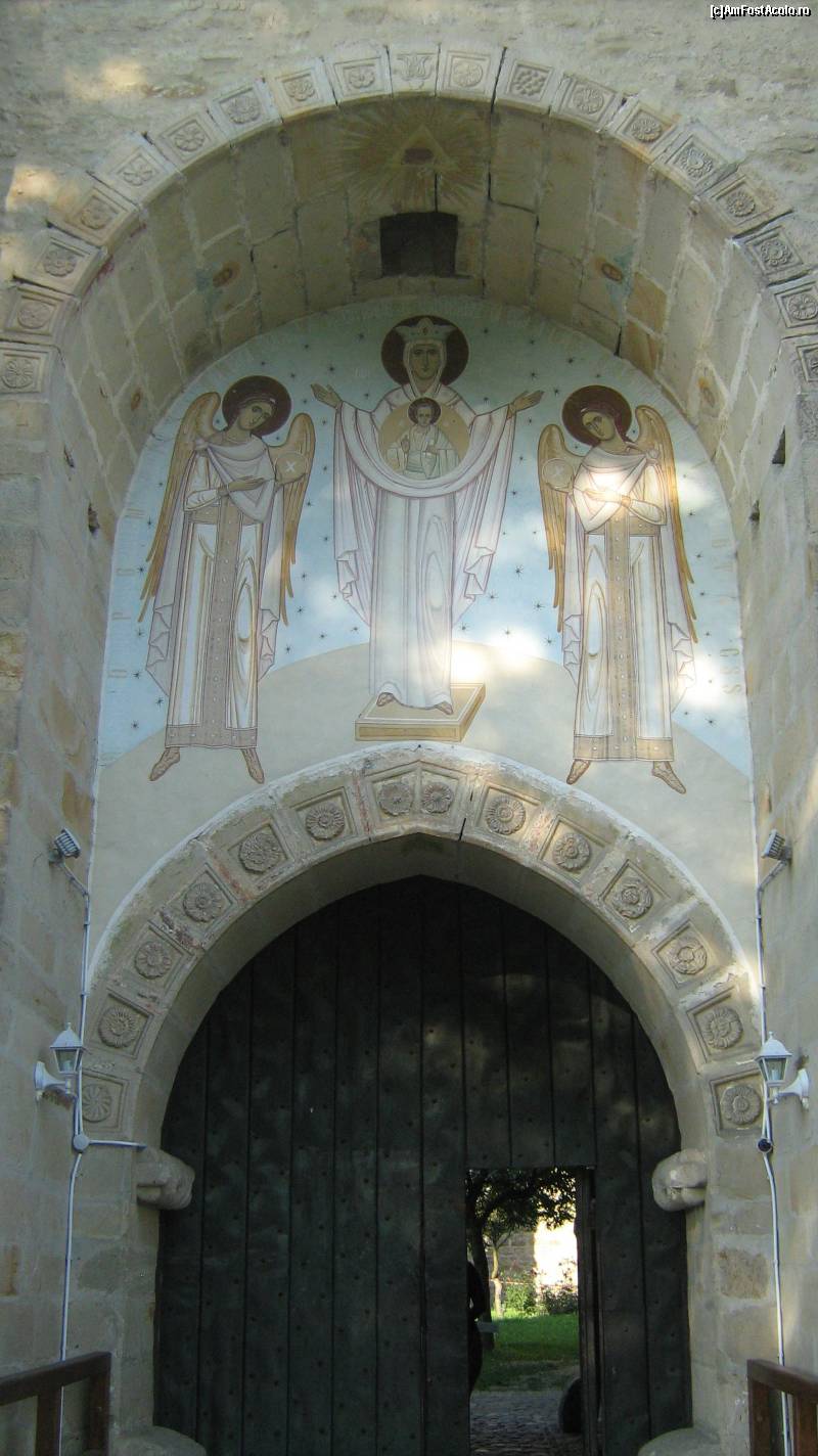[P01] Poarta de intrare in cea mai inalta biserica din Moldova, cu pictura "Pogorarea Sf. Duh", din Dragomirna