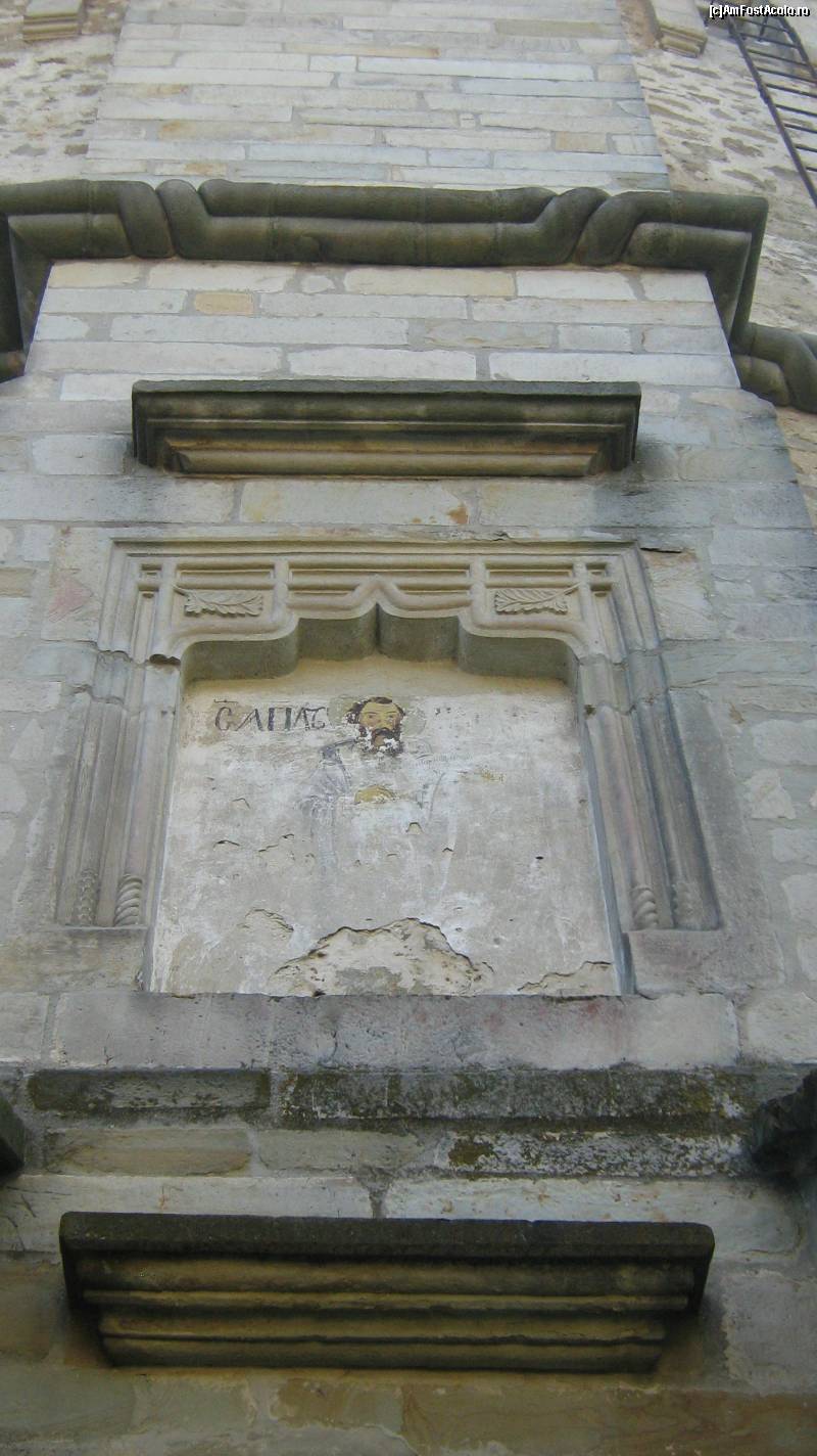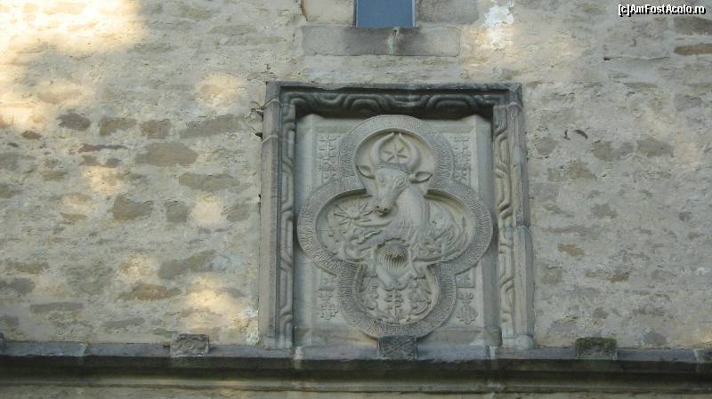 [P08] capul de bour prezent deasupra intrarii in curtea manastirii, este asemanator cu cel de la intrarea la manastirea Putna
