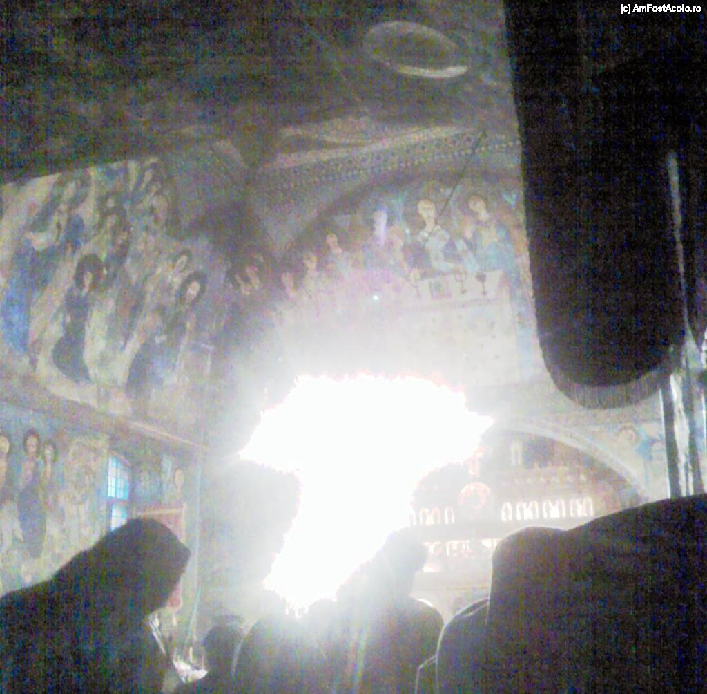[P07] Biserica „Schimbarea la faţă” - o „tentativă” de imagine din interior, din timpul slujbei. Se pot totuși admira frescele și catapeteasma.