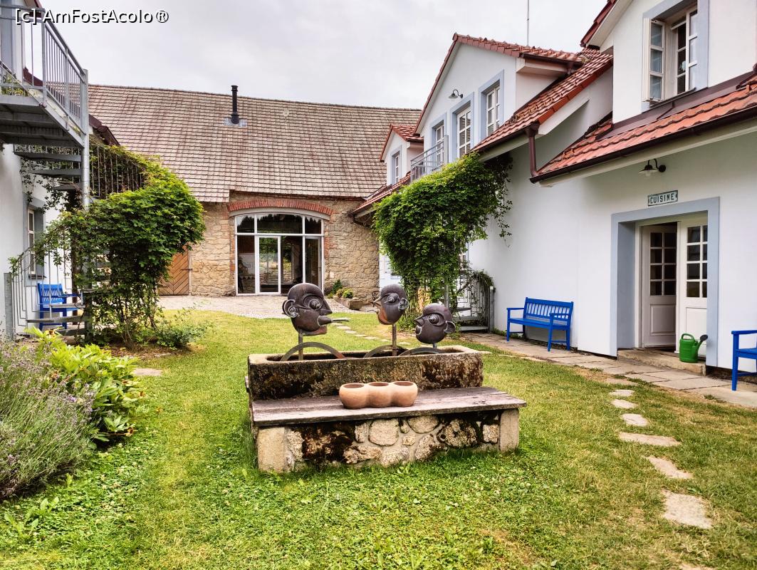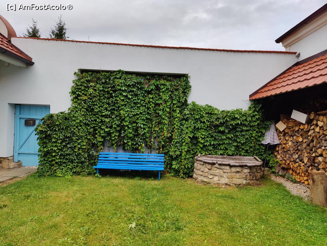 [P12] Matejovec 38; curtea și fântâna; pe fundal, restaurantul