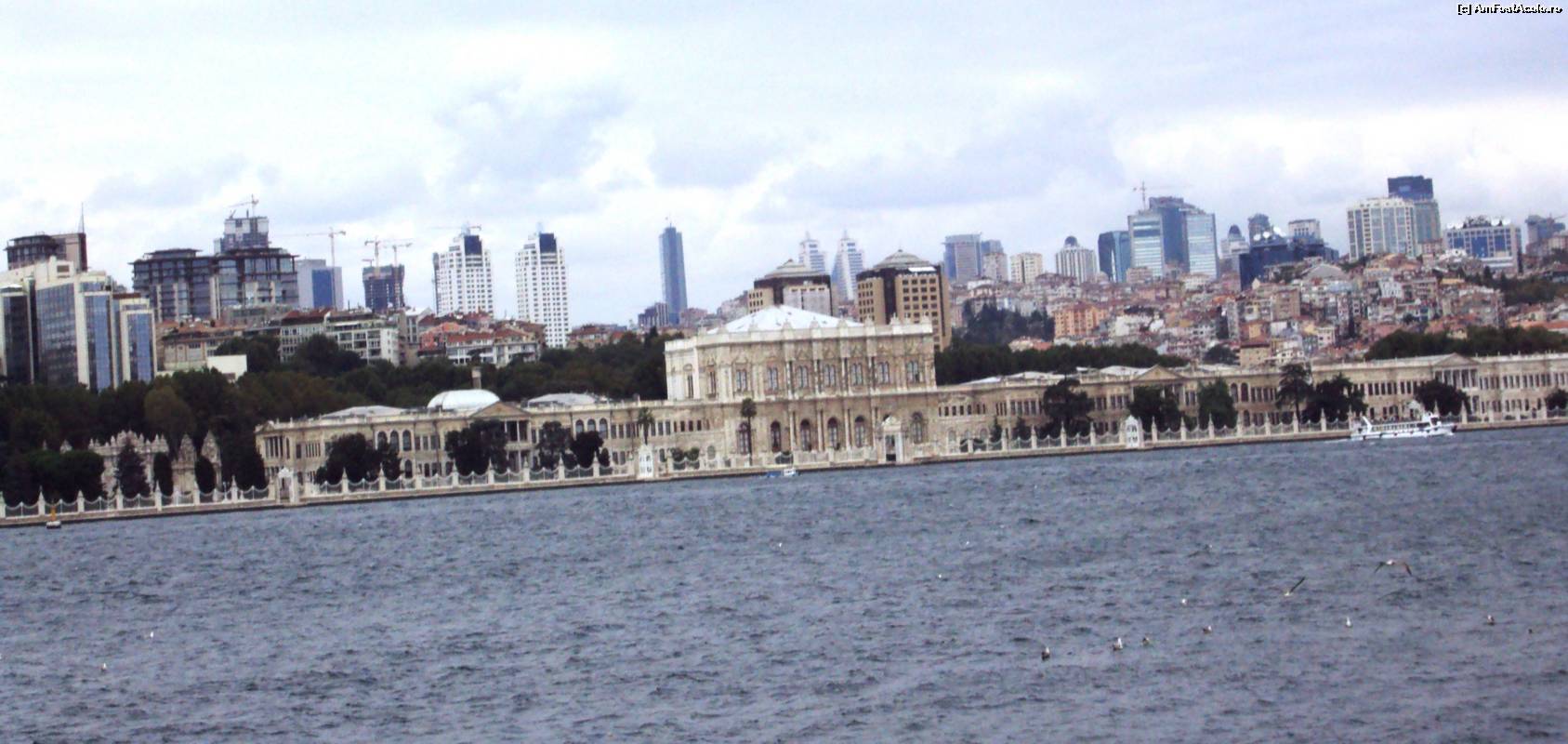 [P26] Vedere de pe feribot - ţărmul european, cu Palatul Dolmabahce şi clădirile marilor hoteluri din Beyoglu