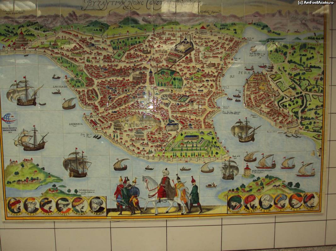 [P36] În Tunel (vechiul metrou) - plăci de ceramică: nelipsita lalea şi o imagine a Istanbulului în anii 1870