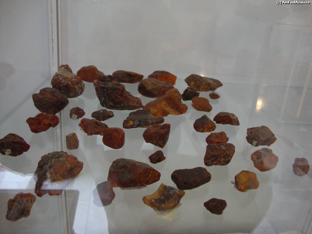 [P21] Bucăți de chihlimbar neprelucrat expuse în colecția muzeală de la Colți.