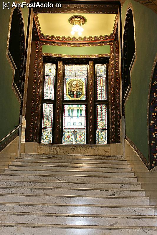 [P08] Palatul Culturii din Tirgu-Mures, scarile si vitraliile de pe peretele frontal