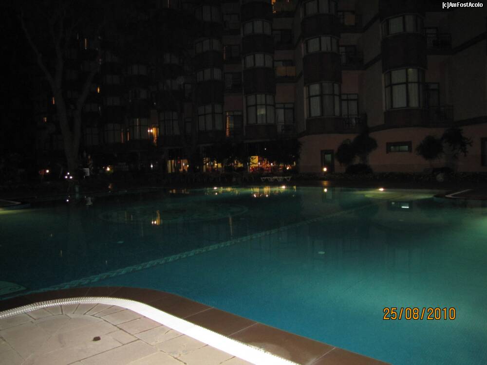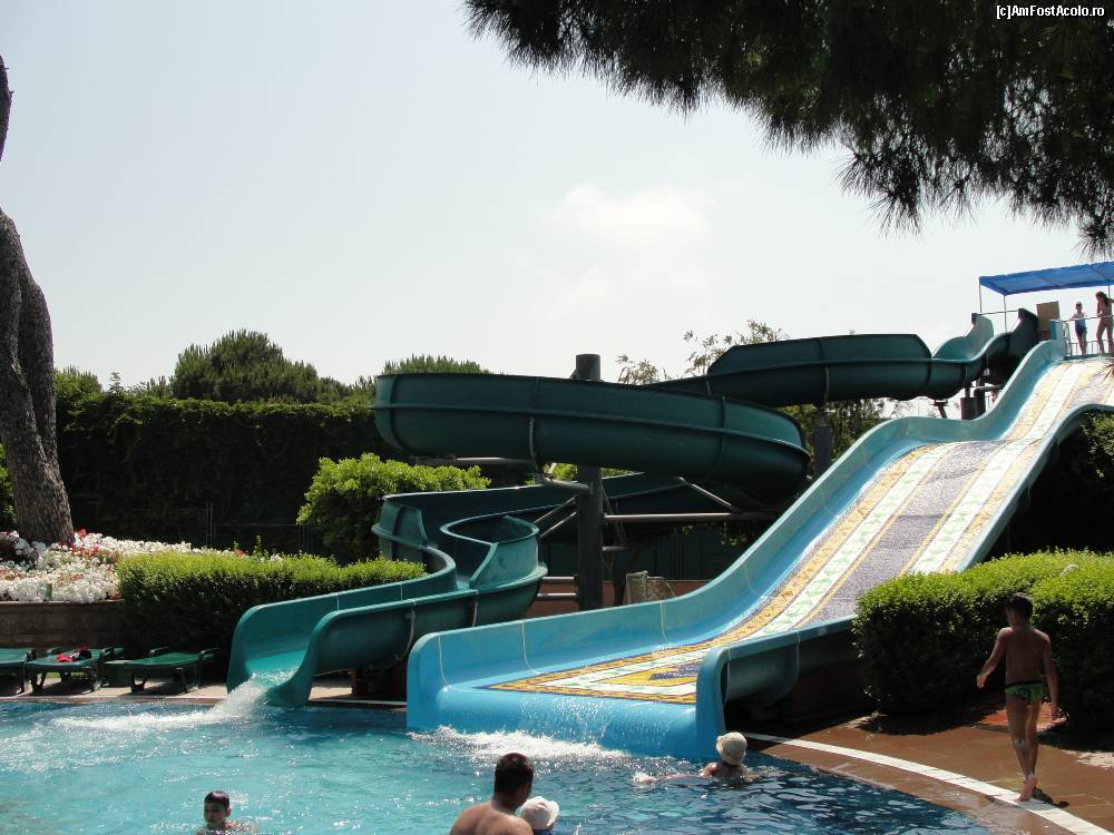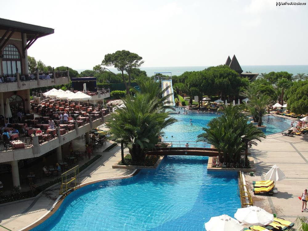 [P01] O parte din piscina mare.In spate se vede unul din topogane,iar in dreapta terasa restaurantului principal,iar dedesubt pool-bar-ul.