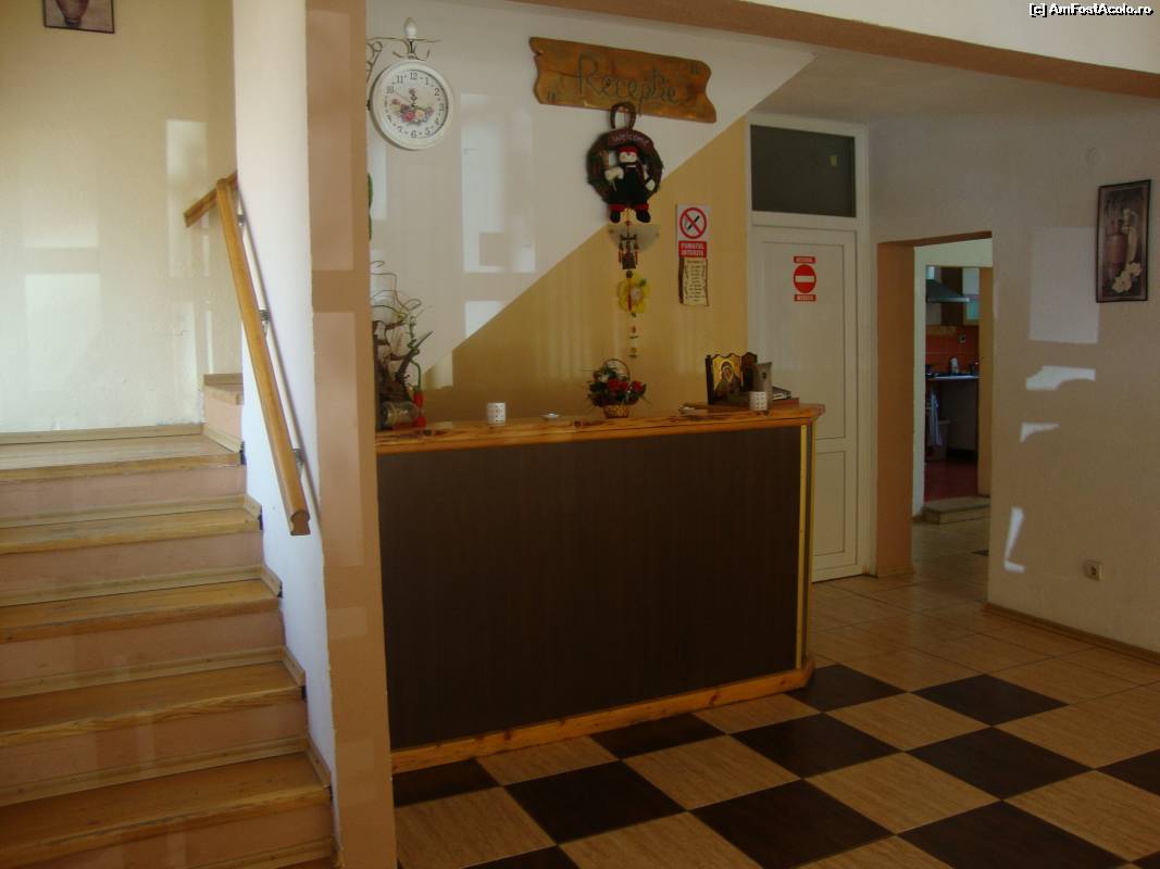 [P11] Suntem la recepție. În dreapta se află sala de mese și bucătăria pensiunii.