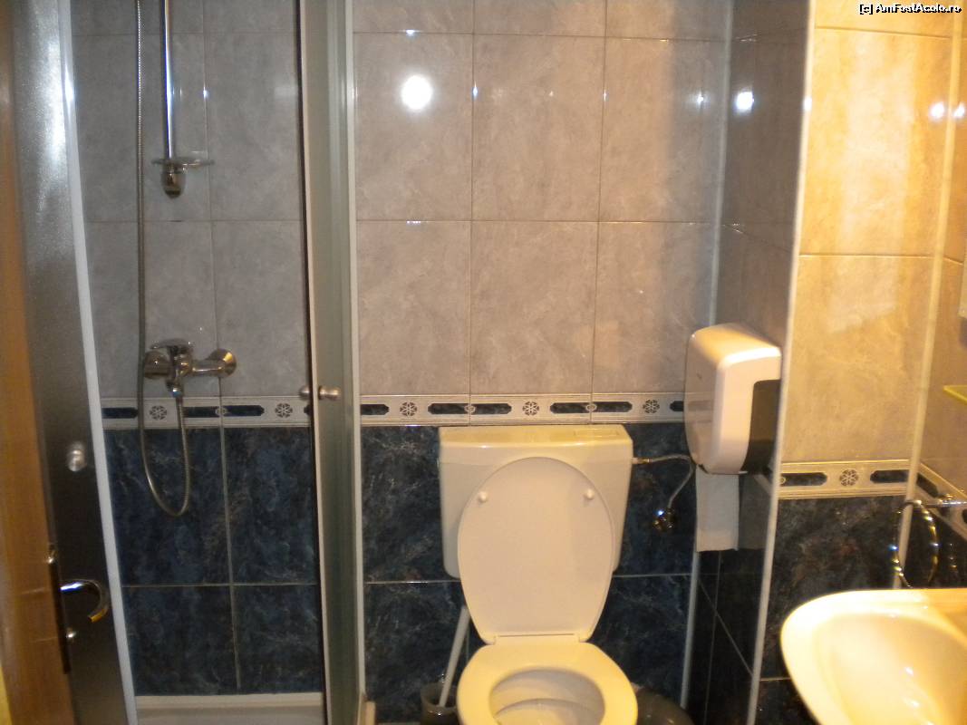[P05] Totul funcţional, apă caldă cu presiune bună (la etajul III), săpun lichid, curăţenie zilnic.
