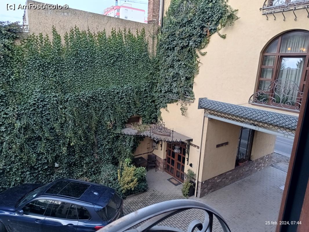 [P06] Intrarea în curtea interioară, vedere de la geamul nostru. În colţ este intrarea spre recepţie.