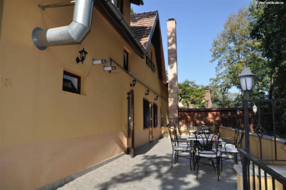 [P15] Mica terasa a pensiunii, la iesirea din retaurant. Mai exista una, cu bancute de lemn, in curtea pensiunii
