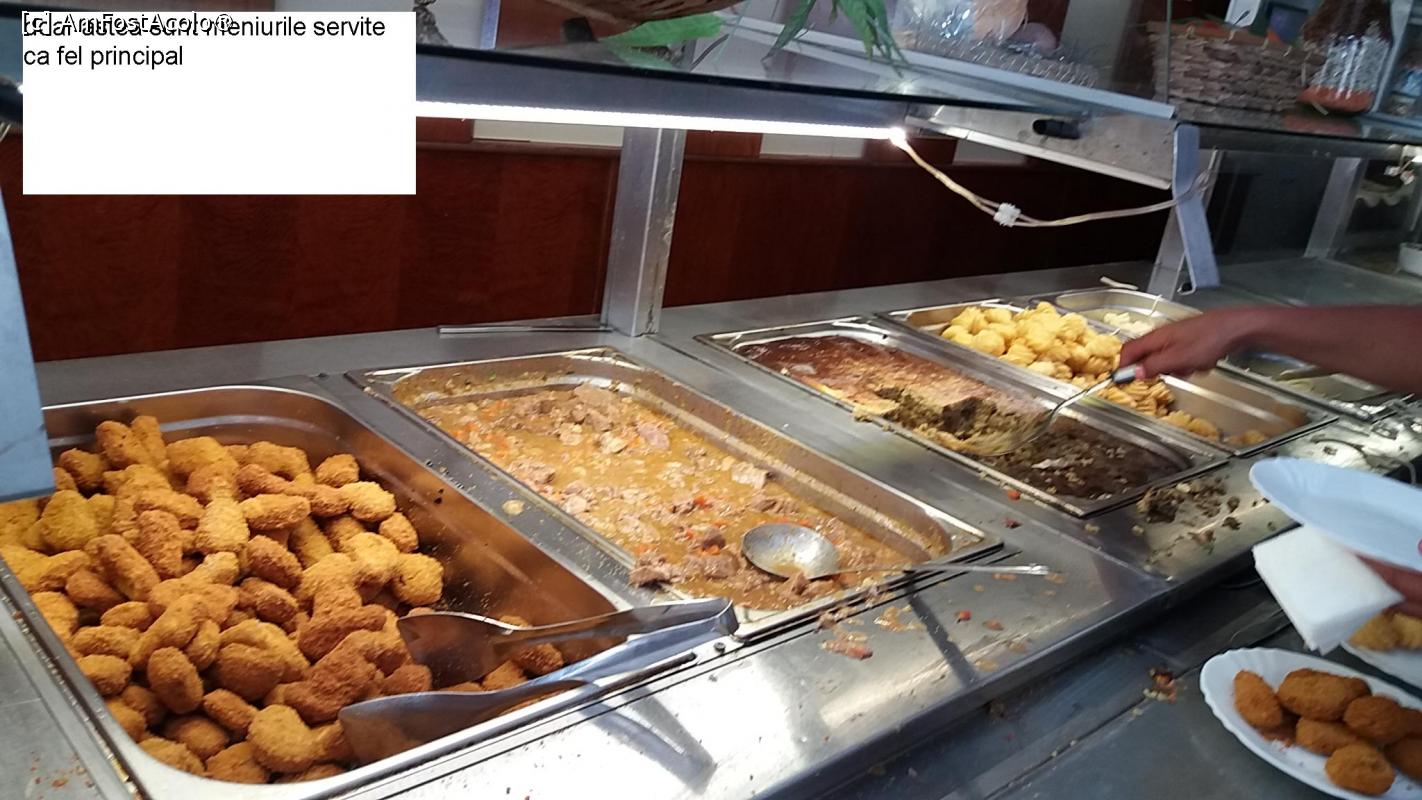 [P05] cam asa arata oferta pt. felul 2: adica 2 garnituri si 2 feluri principale. La aceasta vitrina astepta toata coada de oameni fotografiata
