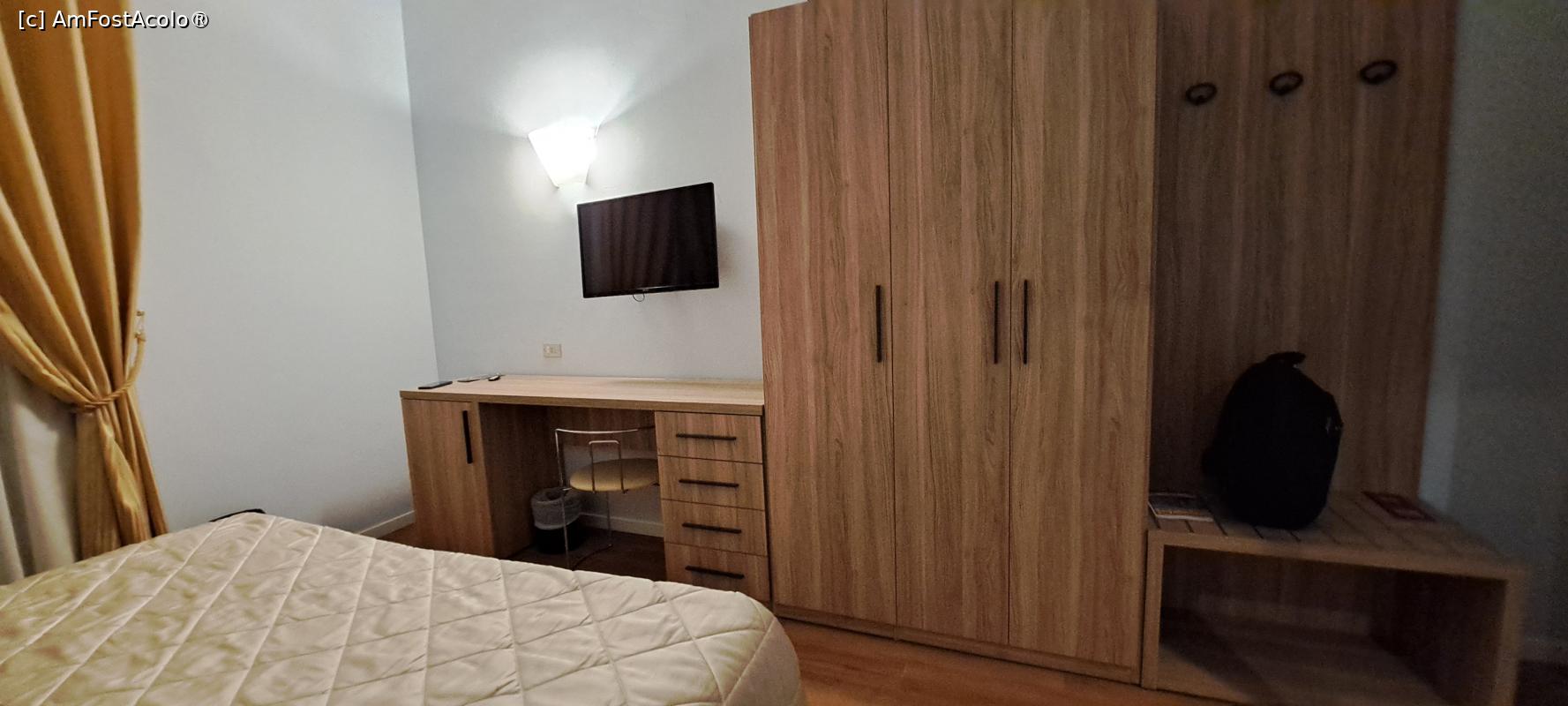 [P13] Hotel Re Enzo, privind dinspre pat către birou, dulapul de haine și cuier