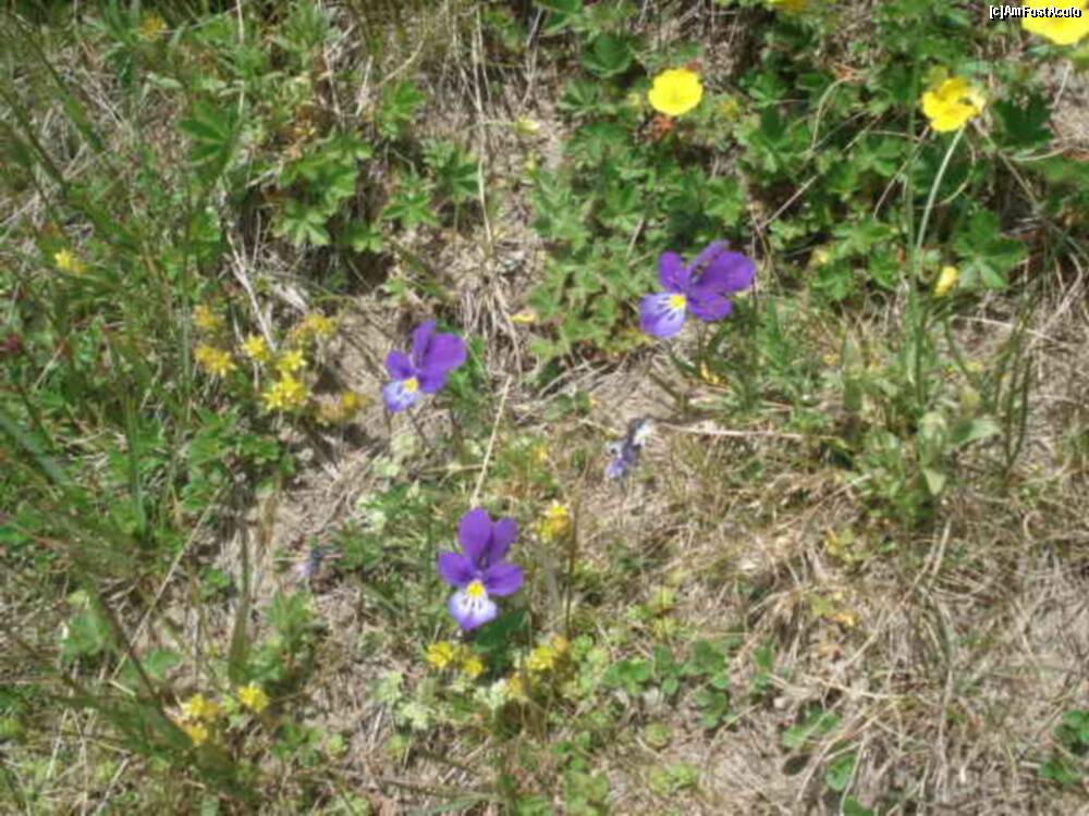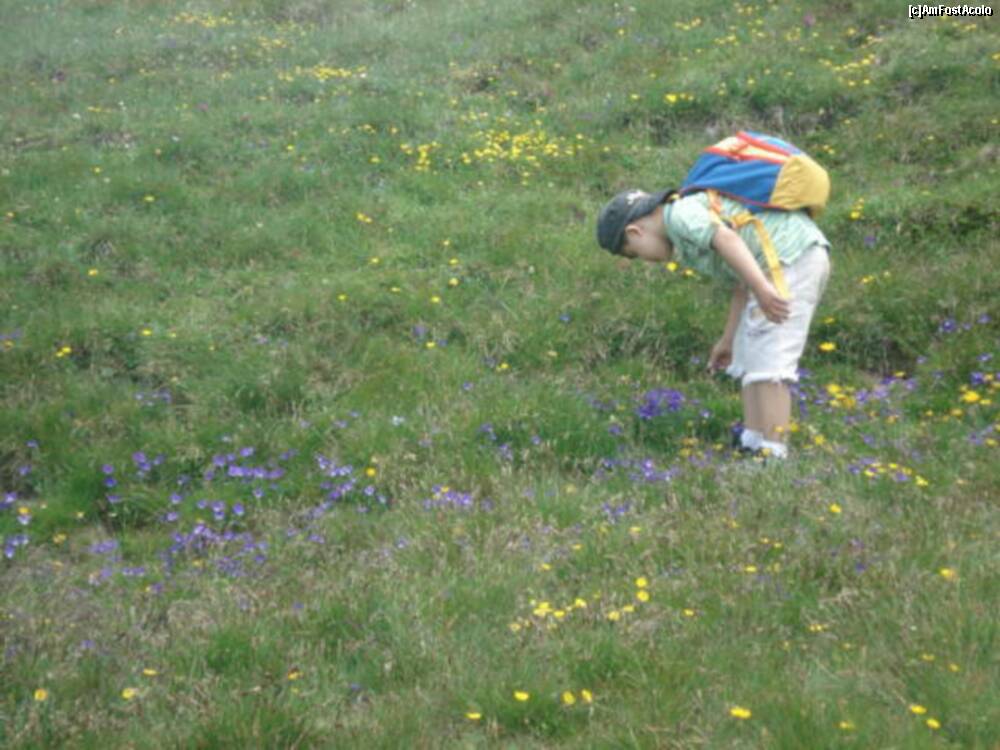 [P48] acesta e un camp plin de panselute salbatice. chiar nu am putut sa ma abtin sa nu vi-l arat ! da ! si un barbatel galant care culegea flori pentru iubita lui, asa cum imi spune mie fi-miu cel mic .