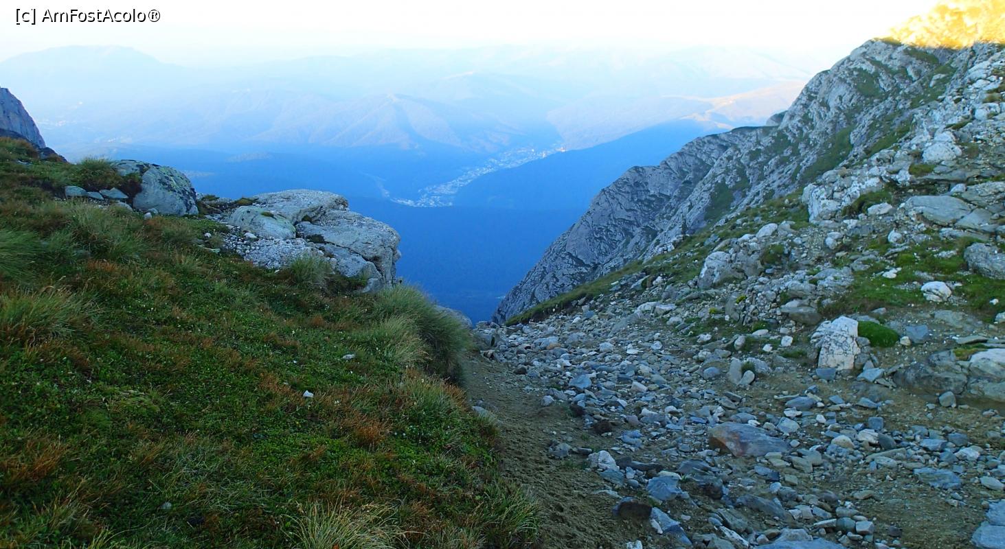 [P07] Începutul Văii Albe care coboară pe versantul stâng al Caraimanului; în vale, Azuga