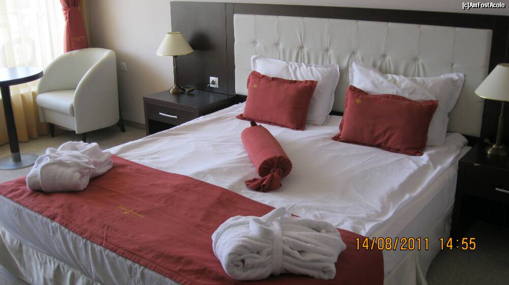 [P39] Patul imens. 2 halate de baie, 2 noptiere, un fotoliu si o masa de sticla care avea sigur 1 tona.