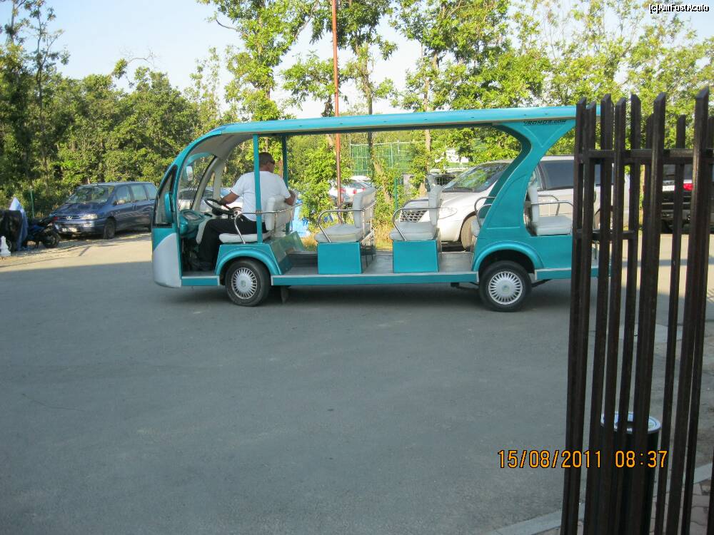 [P42] Minibus-ul care de duce gratuit la plaja Arkutino in 3 minute cu viteza de 5km/h.