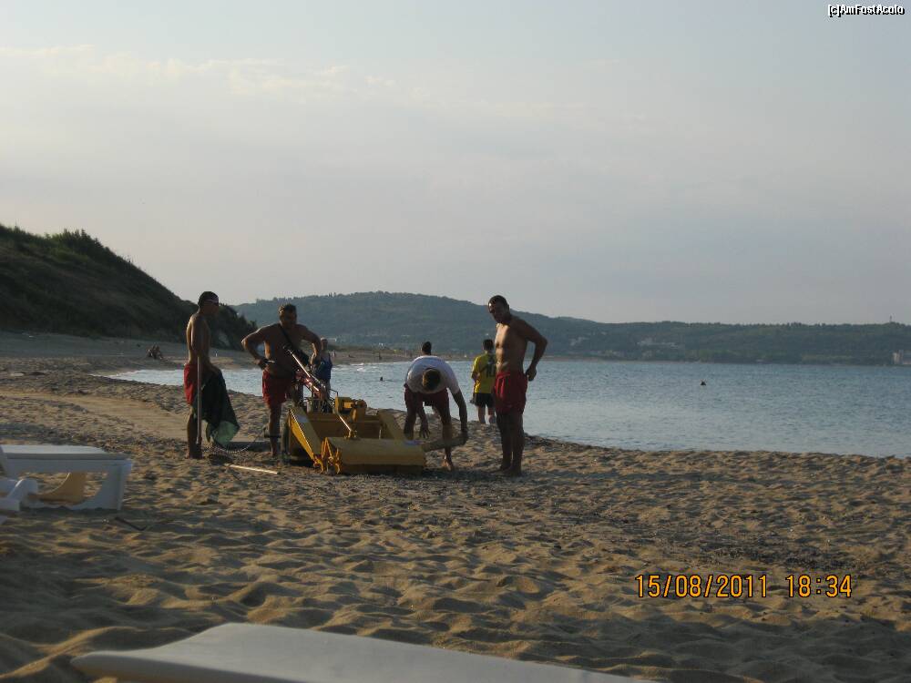 Dupa ora 18, cu aceasta masinarie se aduna si se separa scoicile de nisip.