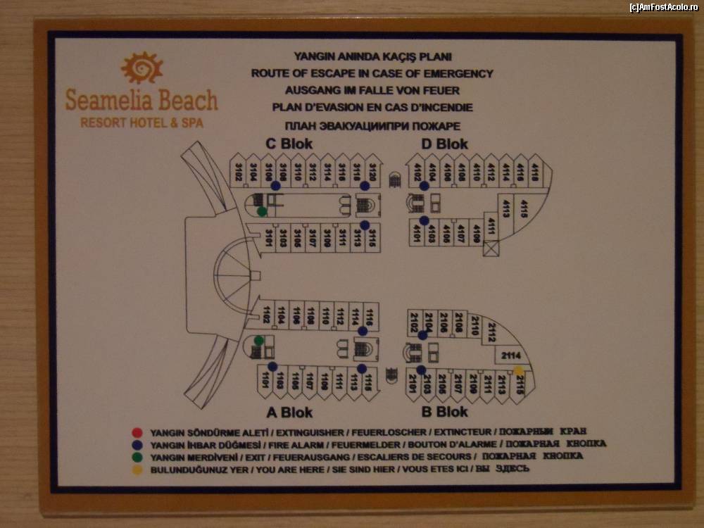 [P24] Planul hotelului. Camerele din dreapta sunt orientate spre mare, cele din stanga, nu. Cea mai buna cazare este in blocurile B si D