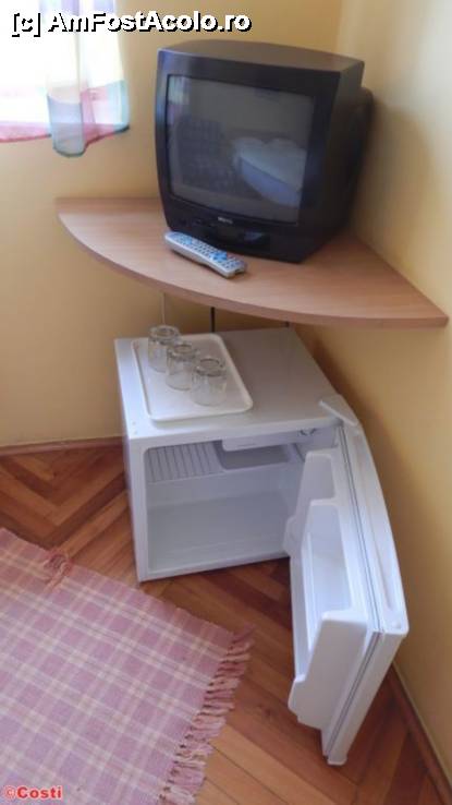 [P11] Televizorul şi mini-frigiderul gol.