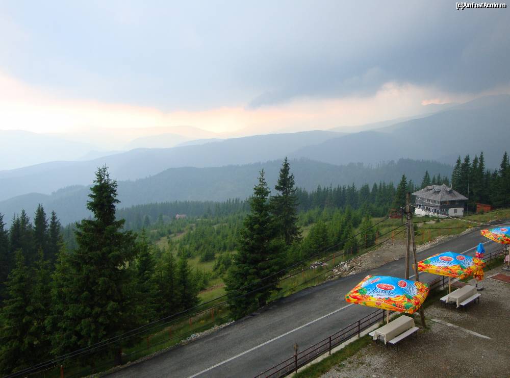 [P04] Rânca-panorama munților sub perdeaua norilor,văzută de pe terasa Pensiunii Eden