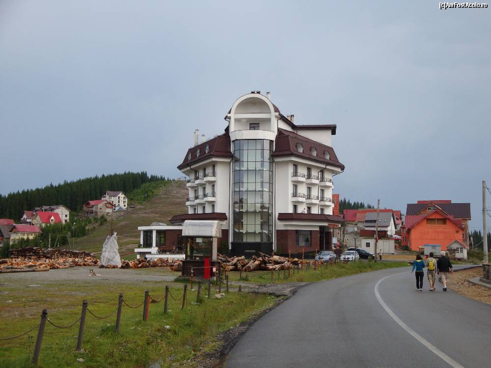 [P08] Rînca-Hotelul Onix *** stele. În stânga imaginii se vede una dintre pârtiile de ski amenajată cu telescaun