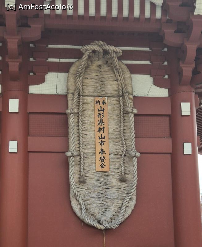 [P10] Pe cealalta parte a portii este agatata o pereche de sandale traditionale japoneze, O-Waraji, din paie de orez impletite, imense, ce cantaresc 400 kg si au 4,5 m lungime.