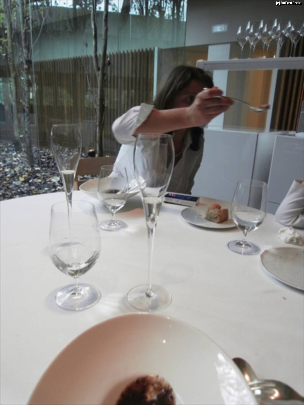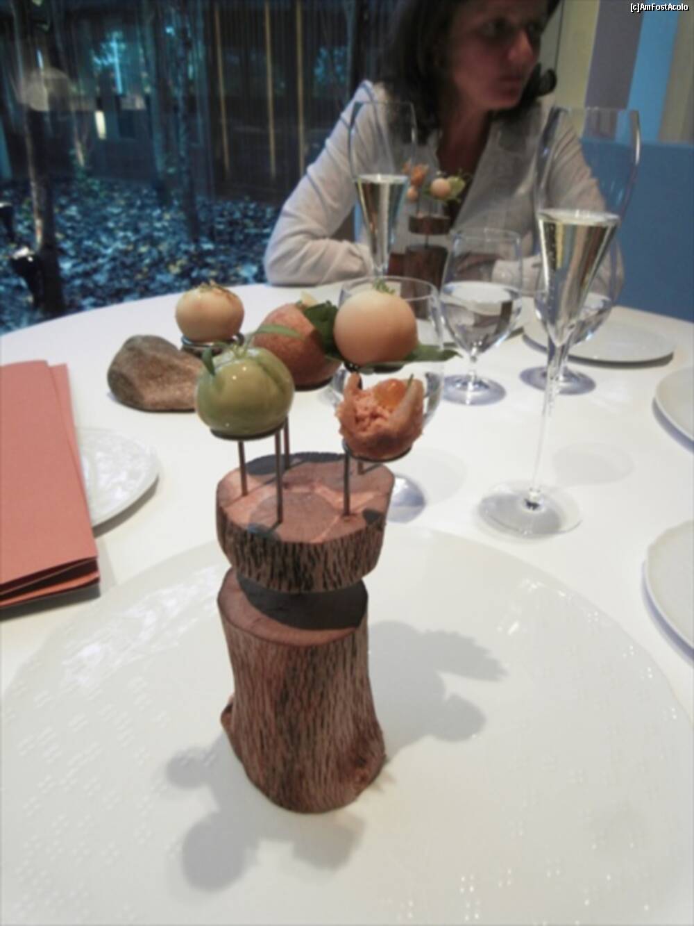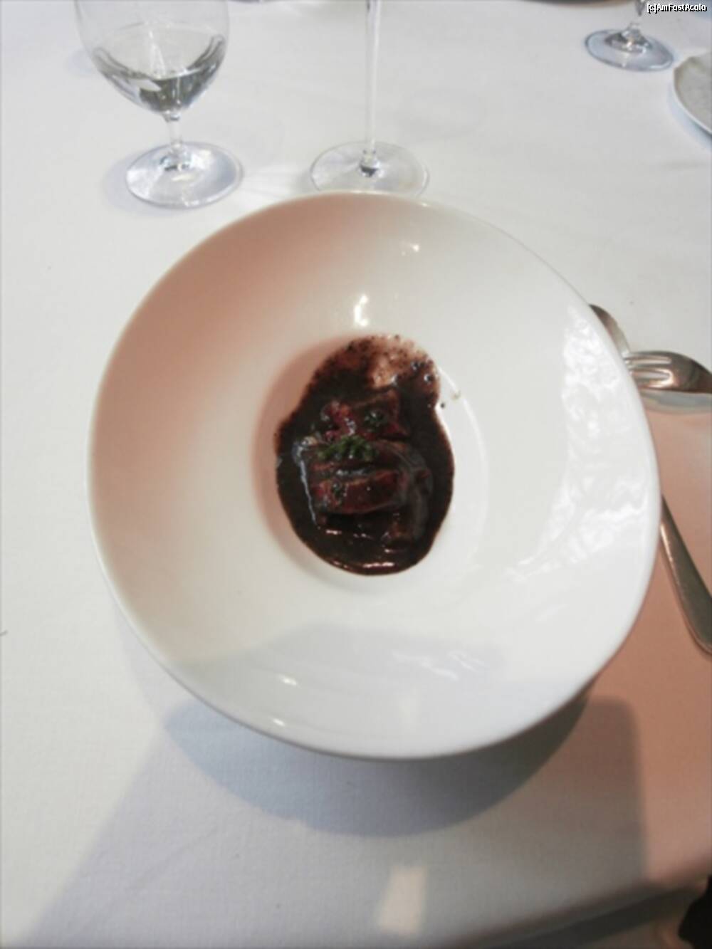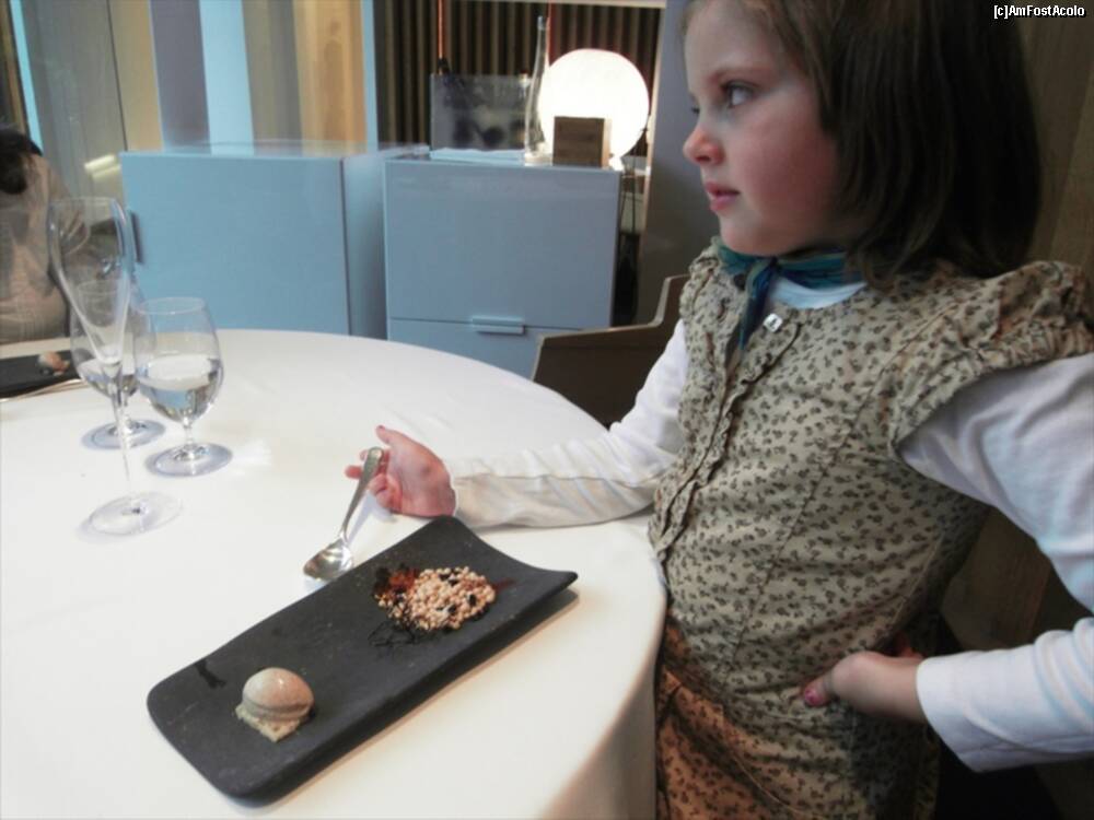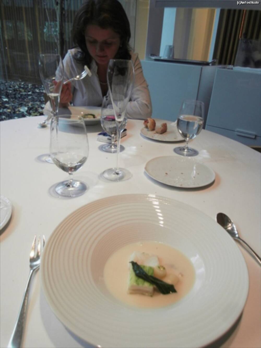 [P13] Astea din bolovanul taiat cred ca erau "Truffled brioche" ..rele cu draci. Fuseseram atentionati sa nu mancam si ierburile alea :)) Bine ca mi-au zis. In farfurie cred ca era un "Zucchini omelette" si in dreapta "Ring Calamar Adaptation"