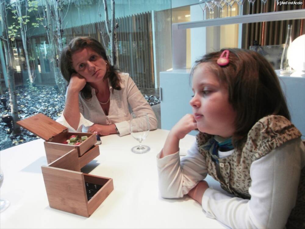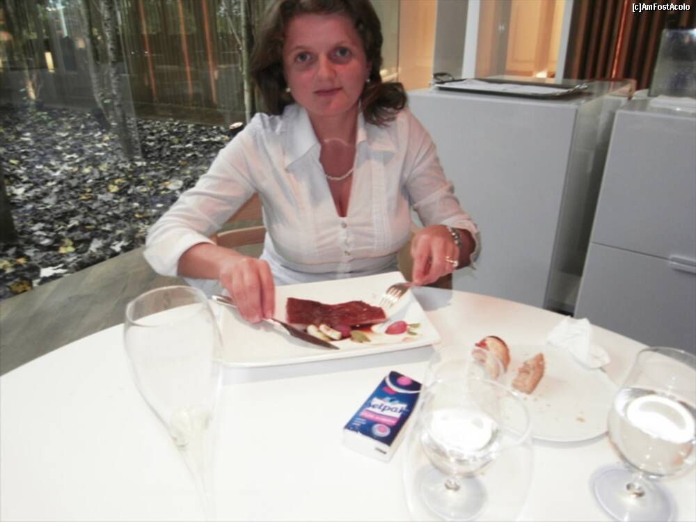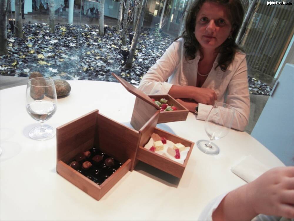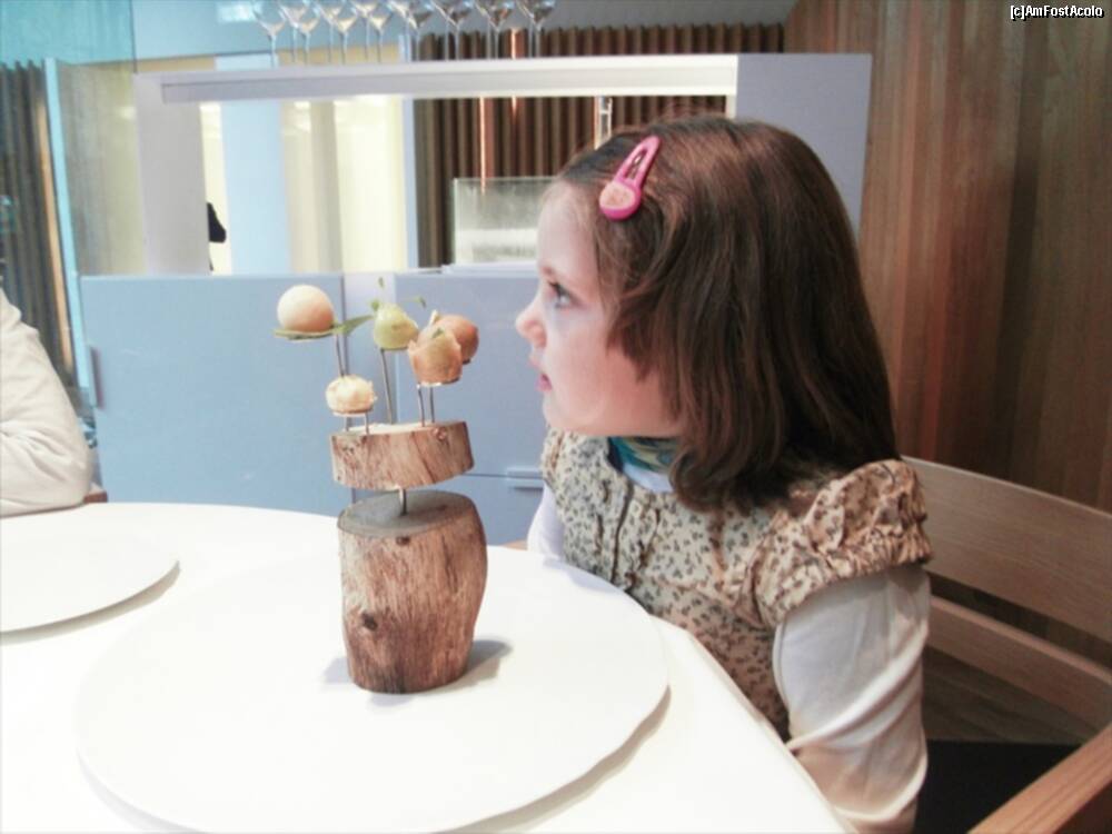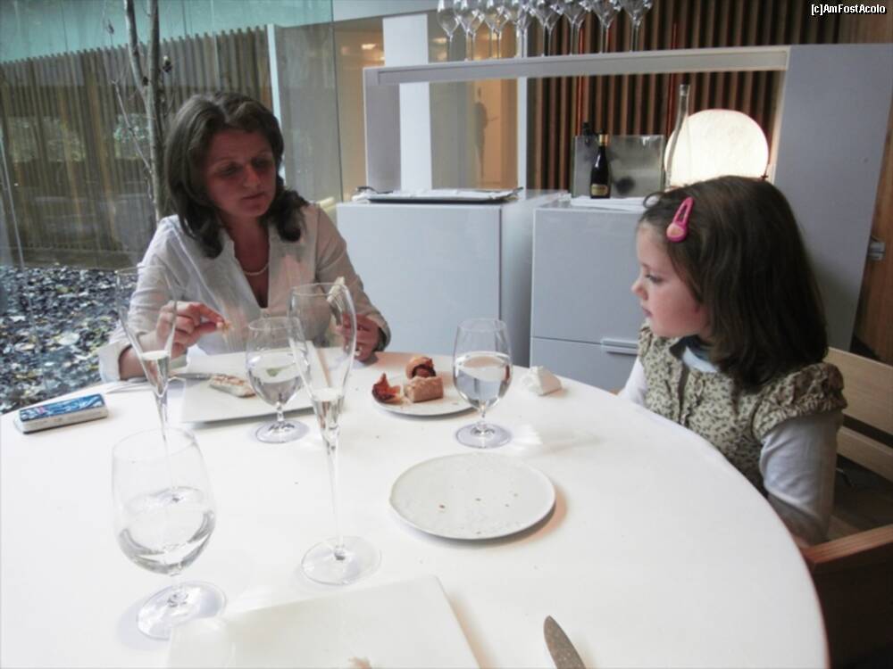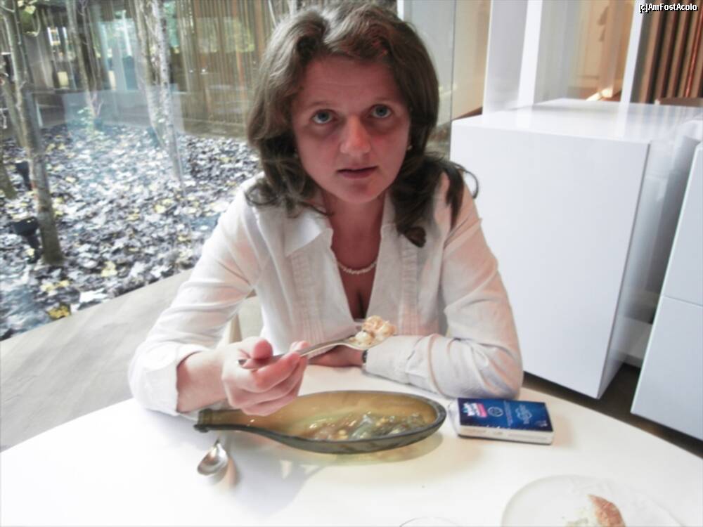 [P13] Astea din bolovanul taiat cred ca erau "Truffled brioche" ..rele cu draci. Fuseseram atentionati sa nu mancam si ierburile alea :)) Bine ca mi-au zis. In farfurie cred ca era un "Zucchini omelette" si in dreapta "Ring Calamar Adaptation"