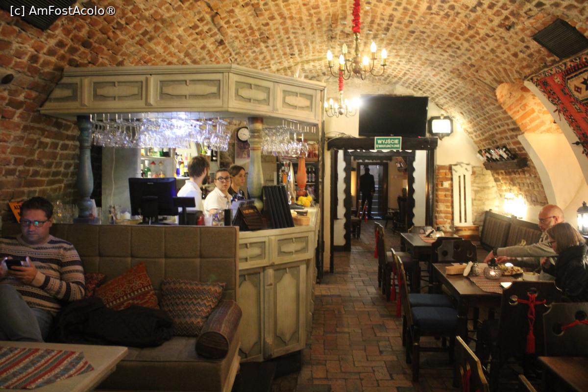 [P28] Zamość, Restauracja Muzealna Ormiańskie Piwnice, Barul, se vede în plan secund intrarea....