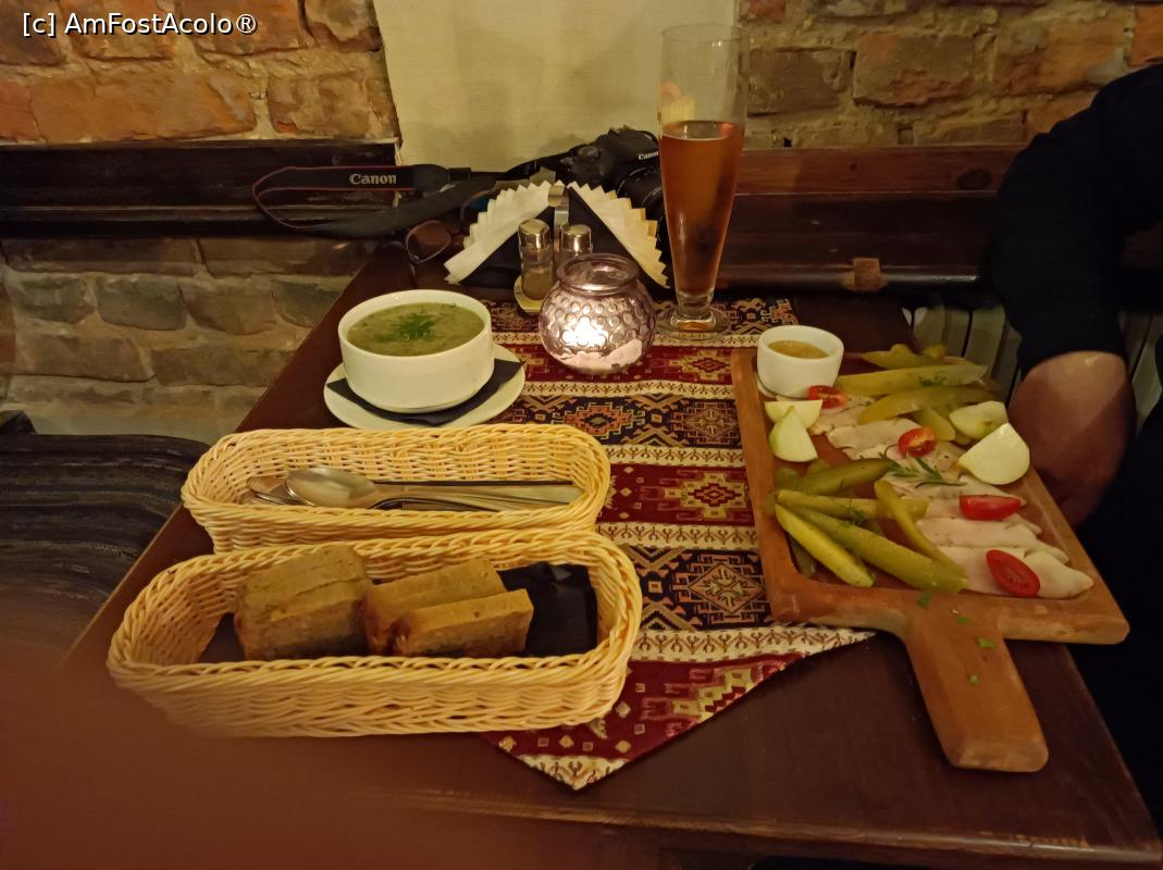 [P32] Zamość, Restauracja Muzealna Ormiańskie Piwnice, Masa noastră cu Supă de urzici, Slănină în piper și Bere