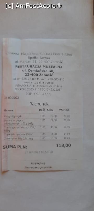 [P43] Zamość, Restauracja Muzealna Ormiańskie Piwnice, Nota de plată
