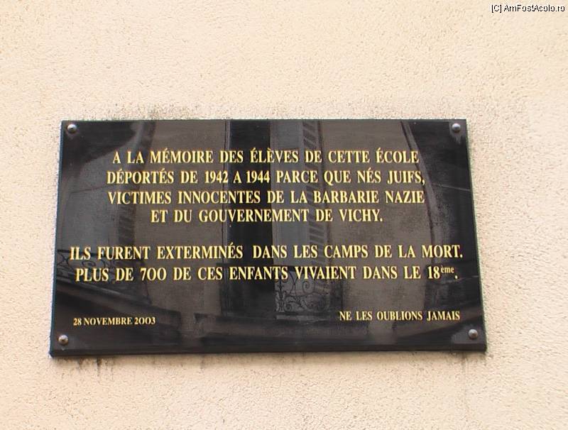 [P141] PARIS PLACA COMEMORATIVA IN MEMORIA ELEVILOR DEPORTATI DE NAZISTI IN LAGARELE DE EXTERMINARE NAZISTE