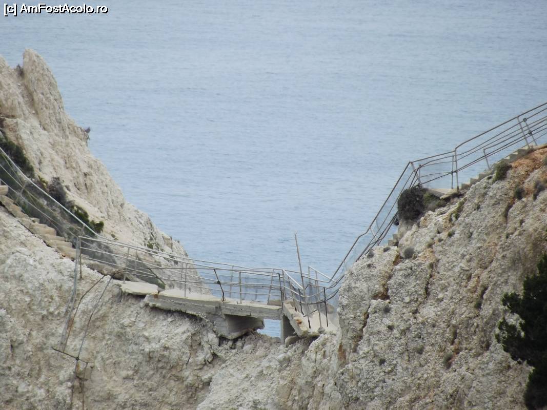 [P29] Porto Katsiki, puntea avariată ce se căţăra pe stăncile din dreapta, privind spre plajă