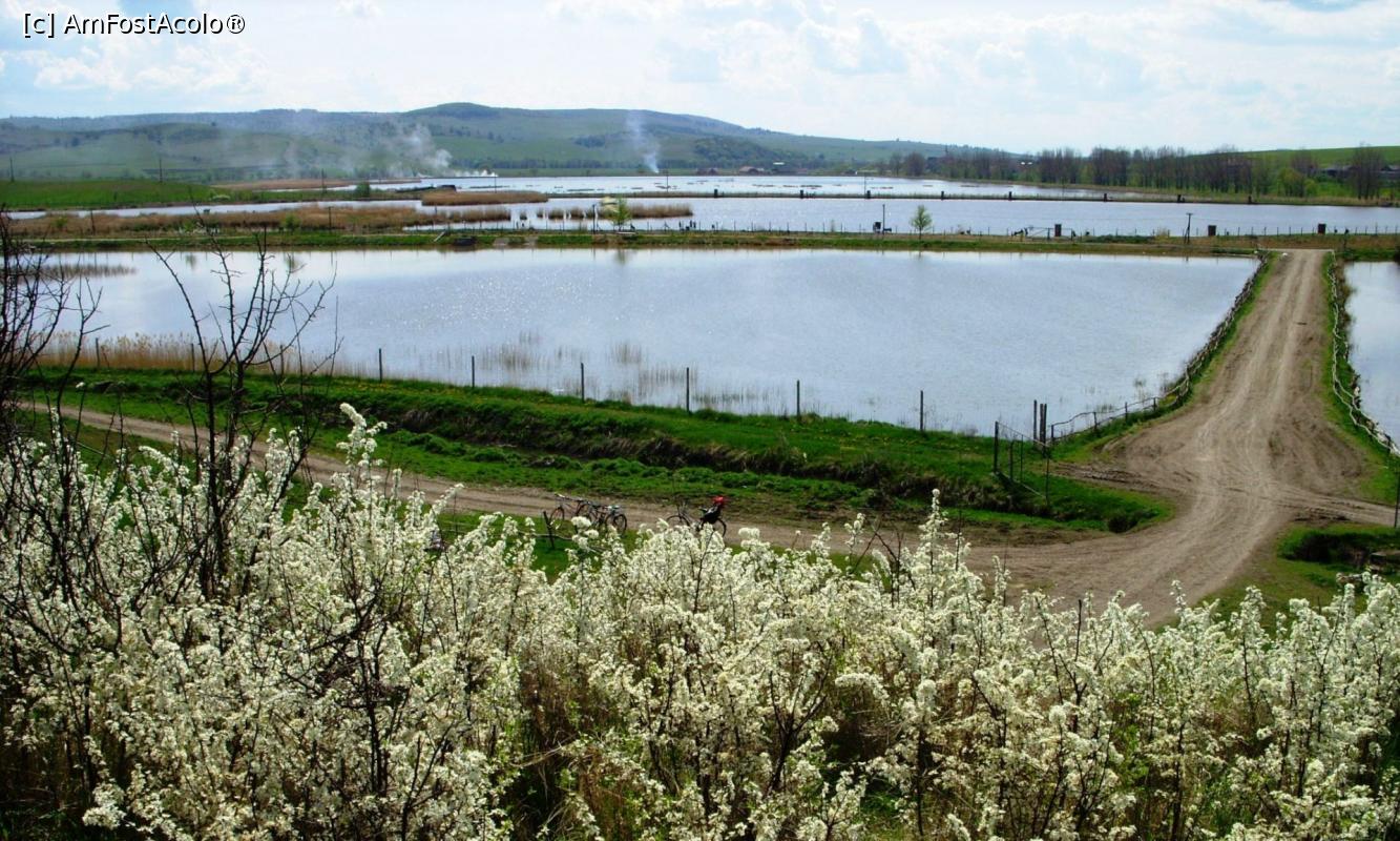 [P02] Cîteva din iazurile nordice (crecătoria ”industrială”) având în prim-plan tufișuri înflorite de? (un fel de prune mici, rotunde, groaznic de amare, dar comestibile)