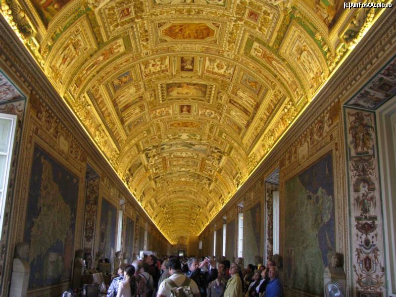 [P14] Muzeul Vatican - un hol lung cu tavanul decorat din abundenta