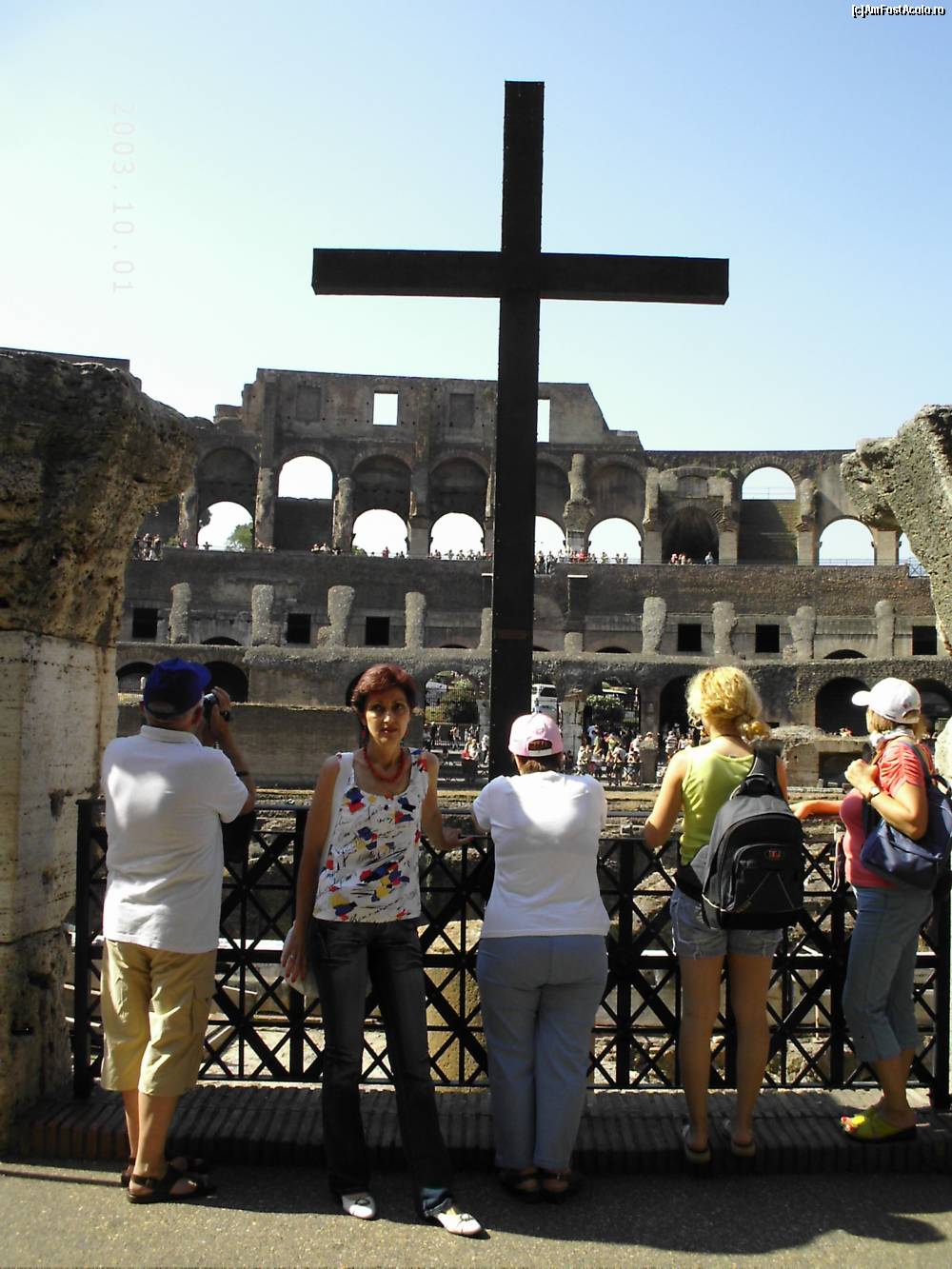 [P14] Crucea din Colosseum, ridicată în secolul al XVIII-lea, de papa Benedict XIV, în memoria martirilor creştini, morţi aici