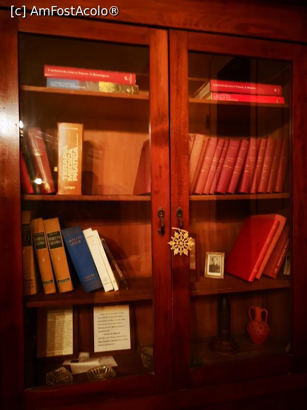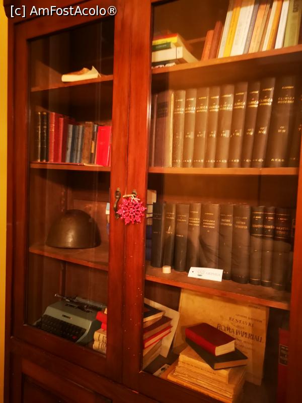 [P03] Livingul mare; biblioteca - mașina de scris pe raftul de jos și casca de soldat deasupra