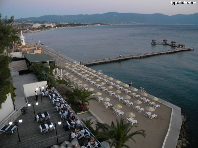 [P07] Seara, din turnul liftului, plaja si restaurantul pescaresc.