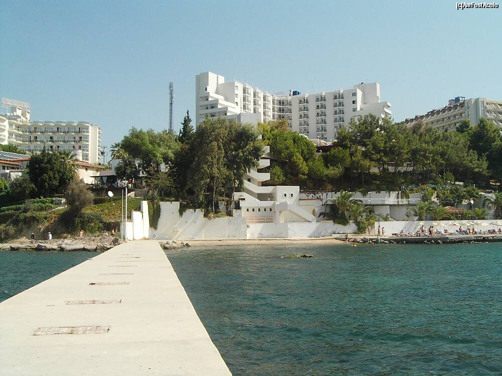 [P100] Piscina de la Fantasia, in stanga. Piscina de la hotel cande Onura, in dreapta. Digul hotelului Fantasia.
