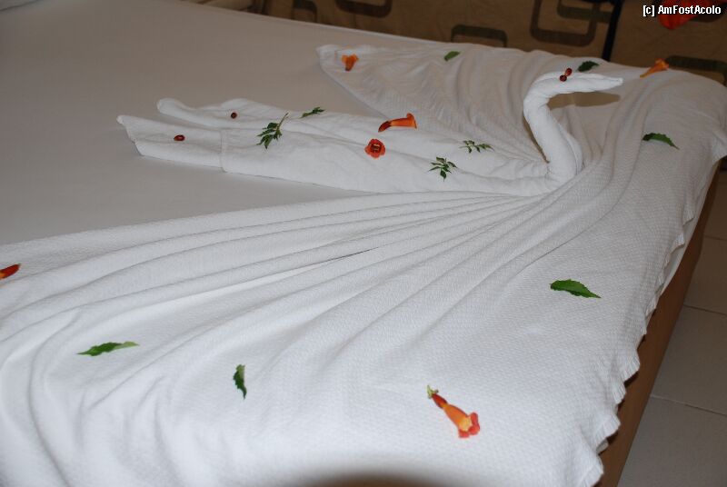 Camerele sunt simple dat satisfacatoare, eficiente. Aerul conditionat si-a facut bine datoria, desi am auzit ca nu in toate camerele hotelului a fost la fel. S-a facut curatenie in camera zilnic, desi prosoapele s-au schimbat doar la 2-3 zile. Intr-o zi, am lasat prosoapele murdare pe podeaua baii, semn ca dorim sa le schimbam. Cand ne-am intors [...] — citește