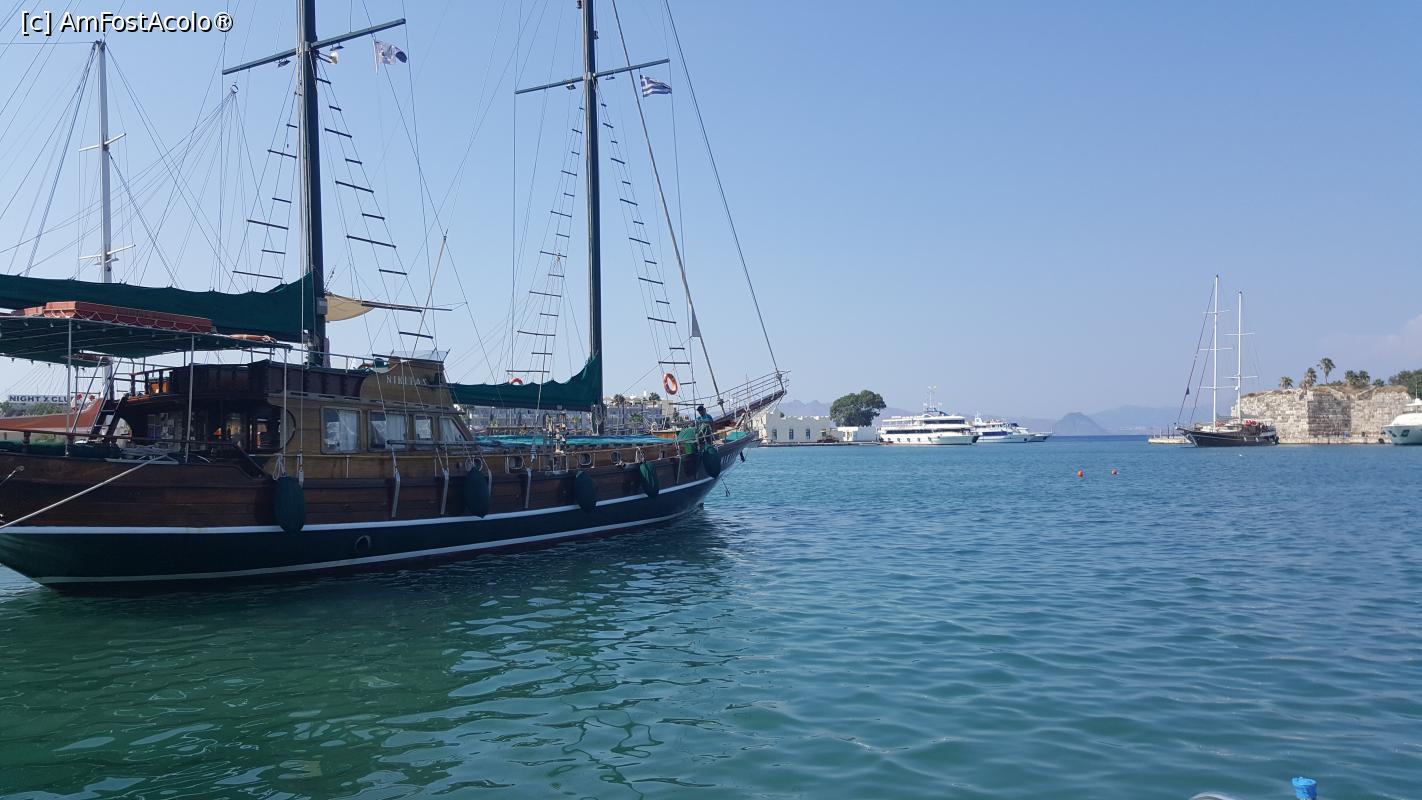 Salutare! Stand in Bodrum am decis ca pentru o zi sa vin in Kos si nu mi. a parut rau. Dupa un drum pe mare cu catamaranul de jumatate de ora din portul Bodrum am ajuns in Kos town capitala insulei Kos, insula fiind foarte aproape de tarmul turcesc.