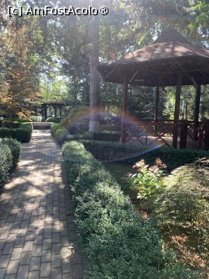 Hotelul a fost conceput atât pentru un sejur cât și cazare de tranzit cum am avut noi. Pentru cei care vor un sejur zona liniștită și verdele din jur este un avantaj, iar șederea va fi odihnitoare. Clădirea se întinde pe lângă parcul propriu care face toți banii, copacii oferă o umbră protectoare, tot zgomotul produs este de la păsări iar în minifântâna arteziană se pot observa broaște țestoase, ce-i drept broaște mai mici. Aici în parcul hotelului clienții se pot odihni fie pe o bancă sau într-un foișor mai mic ori lua masa în foișorul mare. Am auzit că ar funcționa și un restaurant aici un restaurant terasă, așa am observat și din unele poze găsite pe sait. De întrebat nu am întrebat, aveam nevoie doar de un mic dejun, care se mănâncă într-o altă încăpere.