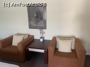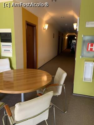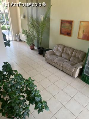 Intrând în recepție ne întâmpină o atmosferă plăcută cu plante și canapele, televizor. De aici se pleacă pe scări spre camere. Pe booking hotelul are o notă de 8,7. și este clasificat la 3 stele. La o simulare arăta un preț de 300 lei/noapte în următoarele 3-4 zile pe urmă era în jur de 400 lei.