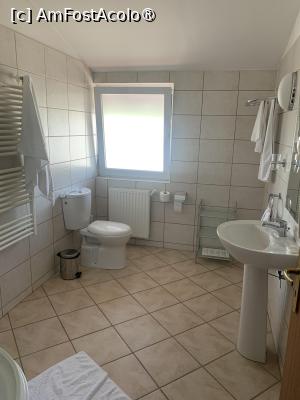 Baia este foarte mare dotată cu cabină de duș, chiuvetă, oglindă, uscător de păr, vas WC, măsuță, suporturi, prosoape, șampoane, geluri, săpunuri.