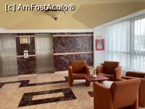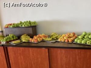 La 15.45 m-am dus si am intrebat daca s-a eliberat o camera matrimoniala (i-am zis ca nu vroiam la ultimul etaj desi avea lift) si ne-a dat cardul, ulterior am mai cerut unul ca sa nu depindem unul de altul (sotul meu statea mai mult la piscina, eu la mare). Am intrat in camera. Avea pat matrimonial, noptiere, dulap, frigider, aer conditionat incastrat, nici nu-l simteai cand merge balcon cu 2 scaune tip sezlong si o masuta , in fata erau pomi care făceau umbră si pe lateral se vedea marea si liniste. Baia destul de mare cu chiuveta mare pentru ati pune tot ce ai, uscator si cu sapun lichid,gel de dus.