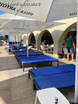 Dupa cum se vede într-o poză la șezlongurile de lângă terasă nu aveau prosoape (oricum și la bulgari găseai prosoape pe șezlonguri). Pe plaja noi am găsit și în prima zi șezlonguri libere și am ajuns după-amiază . Apropo, saltele erau ok și aveau și toper deasupra.