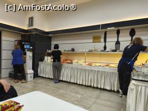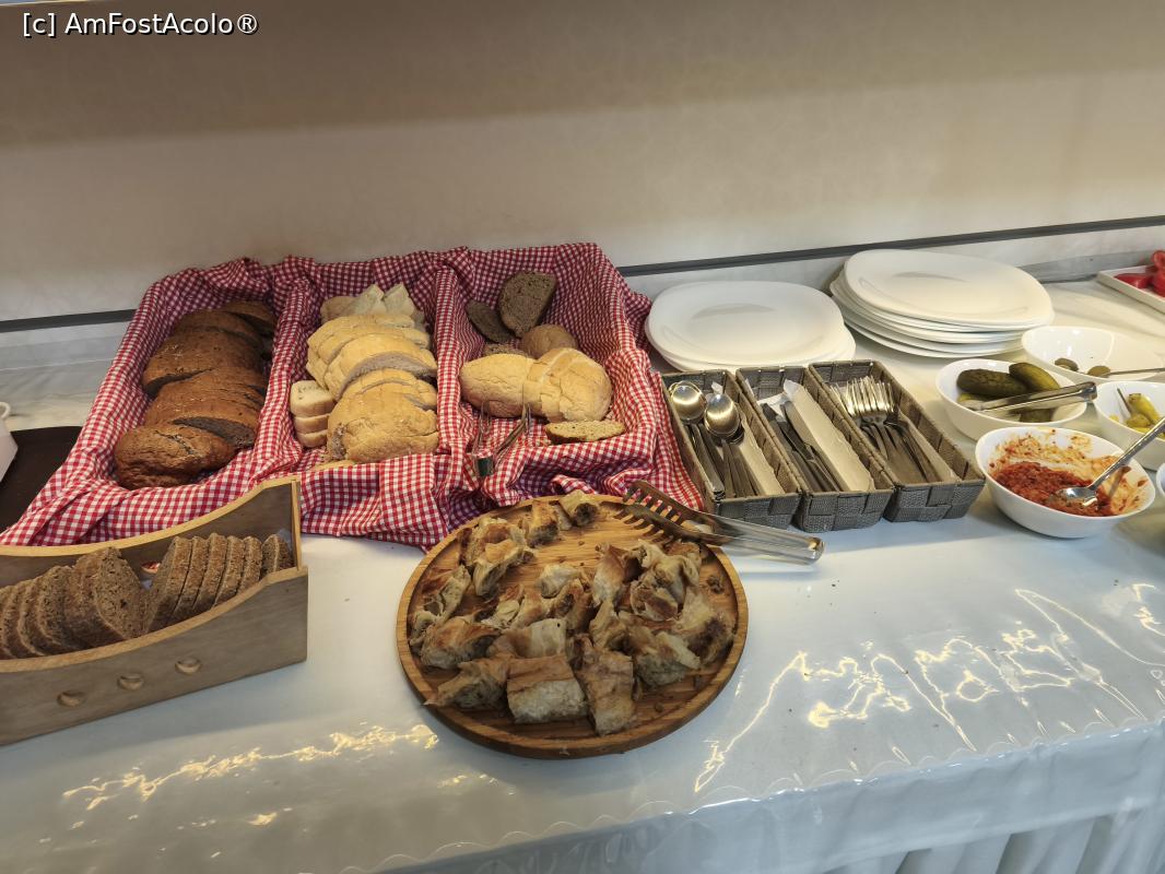 Micul dejun se serveste la restaurantul de la etajul 1 între orele 08.00-10.00. Pe un blat lung la perete au fost asezate produsele specifice micului dejun: mezeluri, brânzeturi, ouă, fructe și legume, gem, zacusca, prajiturele si cereale, lapte, iaurt, ceaiuri si pliculete de cafea, mai multe feluri de paine si chiar si un prajitor de paine, sucuri si un aparat de cafea, dozator de apa.