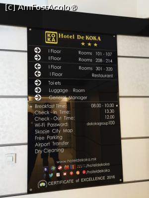 Cautarea pe Booking a unui hotel cu parcare si mic dejun in Skopie a returnat cea mai buna varianta pentru noi – Hotel De Koka. Rezervare s-a facut in martie pentru luna august. In luna mai primesc pe e-mail un mesaj prin booking.com sa activez in 24 de ore un link, neactivarea lui ducand la anularea rezervarii. Trimit e-mail catre info@hoteldekoka. mk si primesc raspuns ca totul este in regula cu rezervarea mea, sa nu dau importanta e-mailului.