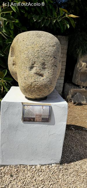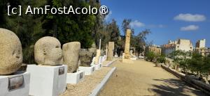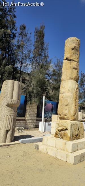 După intrarea în incintă, nu pot să ratez o nouă fotografie căzii de marmură. Apoi coborâm la amfiteatru, unde Doina își încearcă vocea în fața scaunelor goale. Apoi ne îndreptăm, pe strada bine conservată / reabilitată spre sălile de lectură. Dar îmi dau seama că acestea se văd mai bine de sus. Urcăm la loc și mergem pe o altă stradă, paralelă cu cea de jos. Într-adevăr, de aici facem poze mult mai explicite și teatrului și celorlalte clădiri. Tot aici putem vedea piesele recuperate din palatul Cleopatrei. Sunt, în principal părți de statui, capete, busturi, puternic deteriorate de apa mării, și câțiva sfincși. Iese în evidență un obelisc, și el puternic deteriorat, atribuit faraonului Seti I-ul.